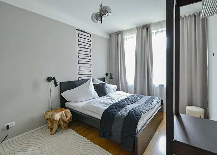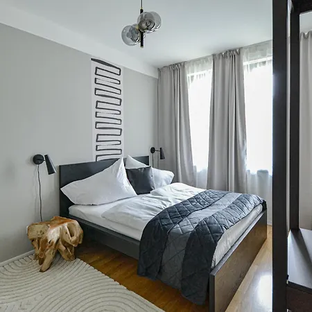 Japanese Design 3Bdr Apartment In A Vibrant Area van 75 m^2 is gelegen op 10-minuten rijden van De Karelsbrug en op korte rijafstand van 10 minuten van de Oude stadsbrugtoren. Dit appartement omvat Wi-Fi, samen met parkeerplaatsen voor gasten, die met de auto reizen.